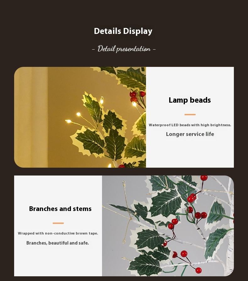 With its stylish and compact design, this decorative tree is ideal for tabletop displays, mantelpieces, shelves, or window sills. The detailed red berry and leaf decoration adds a traditional festive touch while the illuminated branches create a charming centerpiece for Mother’s Day Gift, Father’s Day Gift, Easter Gift, Halloween, Christmas gatherings, New Year celebrations, winter weddings, or holiday parties.