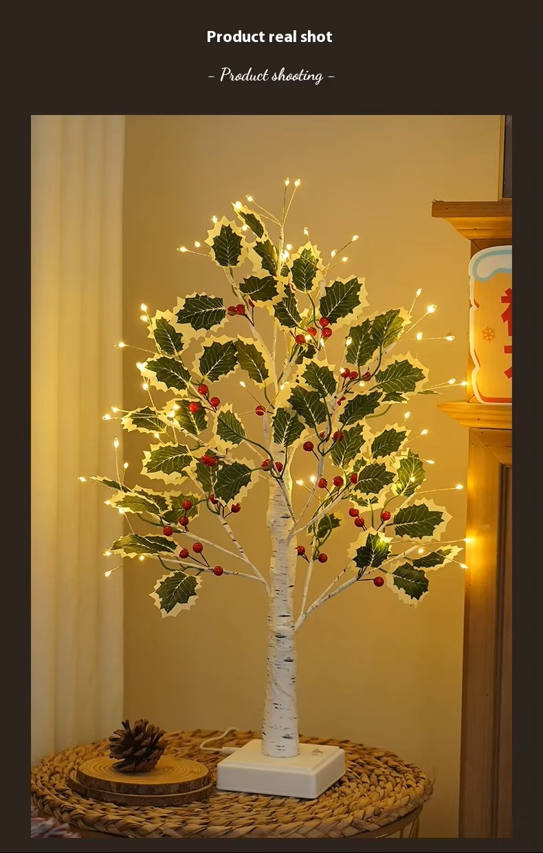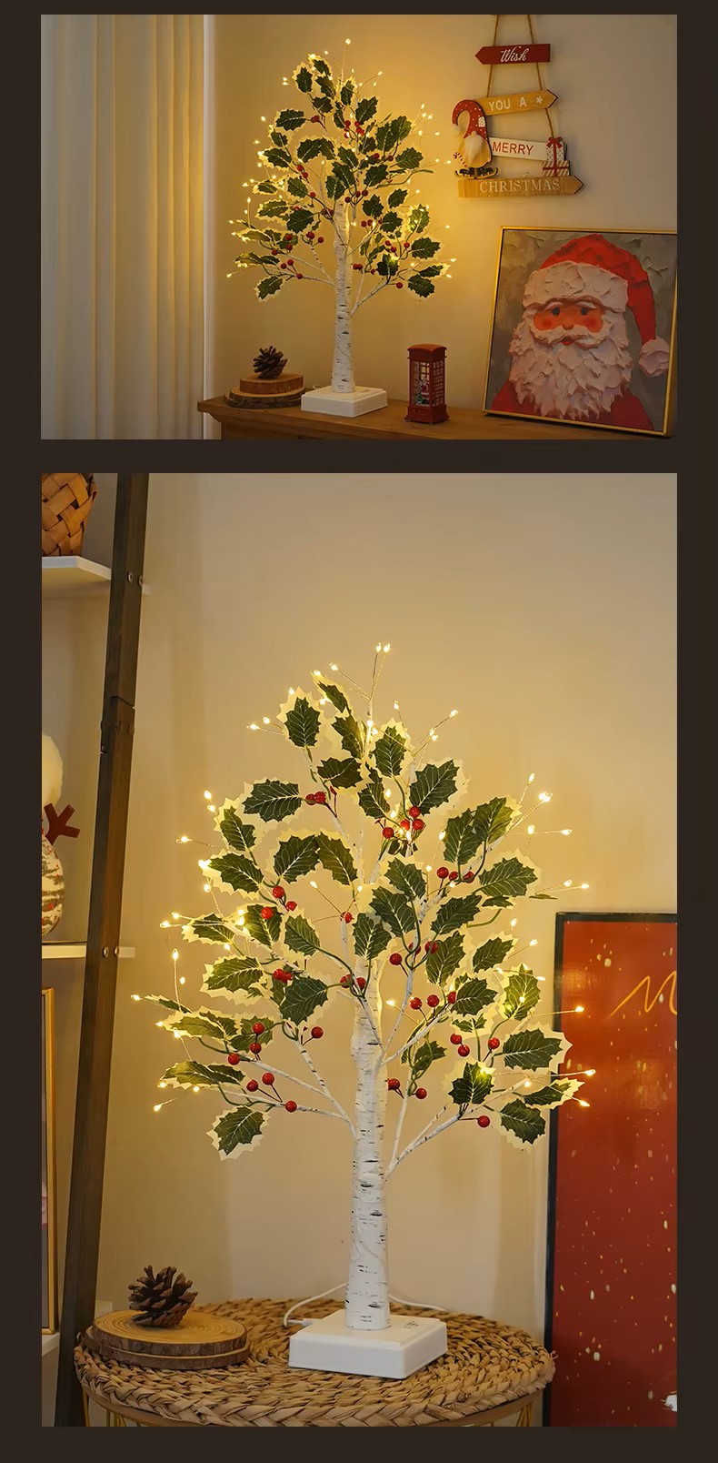 Bring a warm festive glow to your home with this elegant ROYLENCE LED Tree Light Decoration. Designed with decorative red berries and leaf accents, this beautiful tabletop tree creates a cozy and welcoming atmosphere, making it a perfect addition to your seasonal décor. The soft warm white LED lights provide a gentle ambient glow that enhances living rooms, bedrooms, hallways, dining tables, or office spaces during the Christmas season.